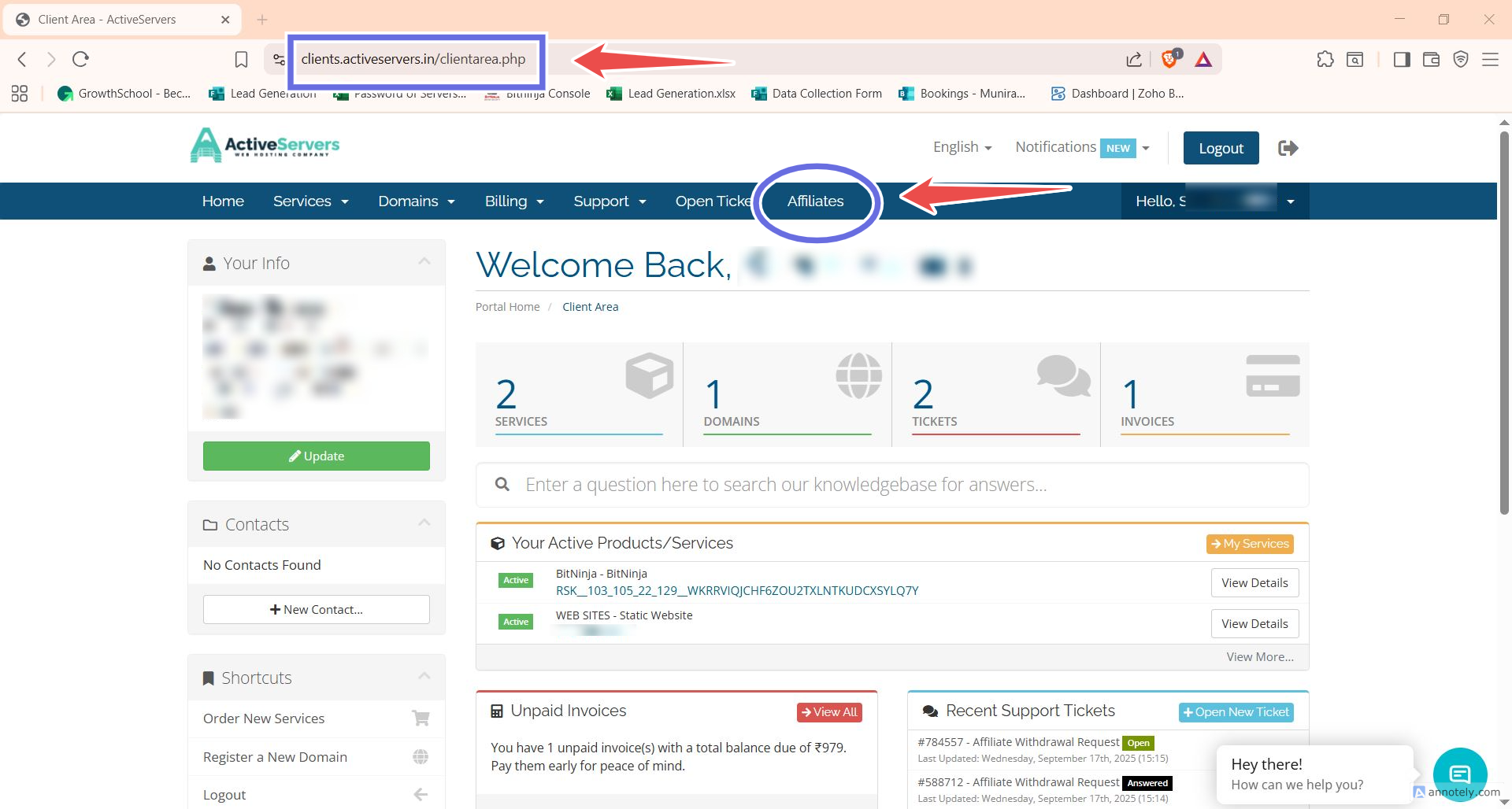 Login to ActiveServers client area and click on "Affiliates".